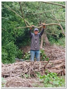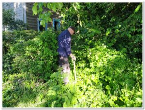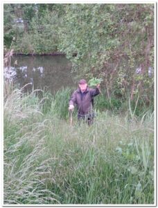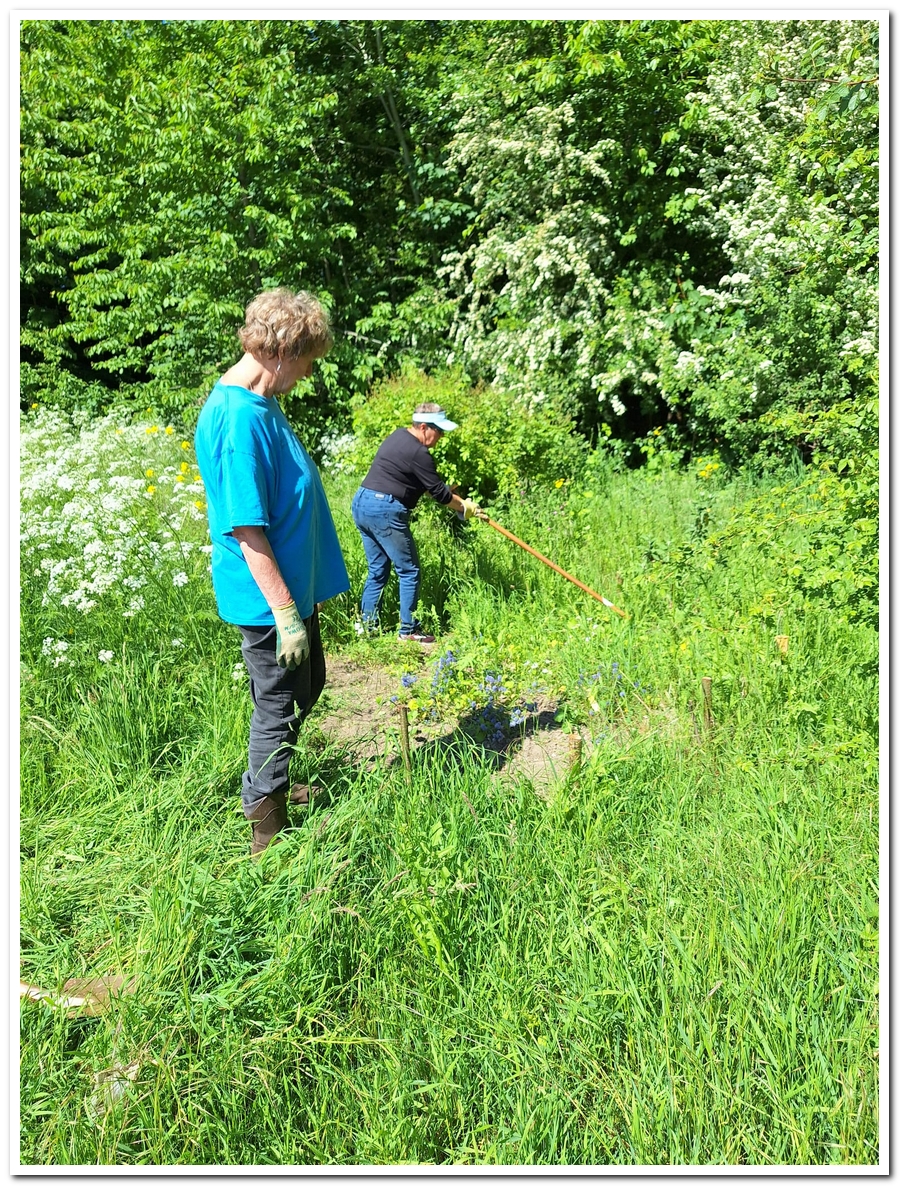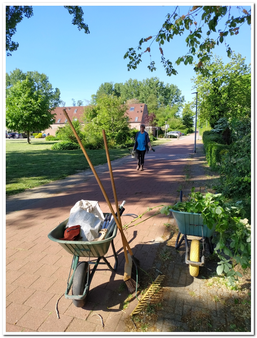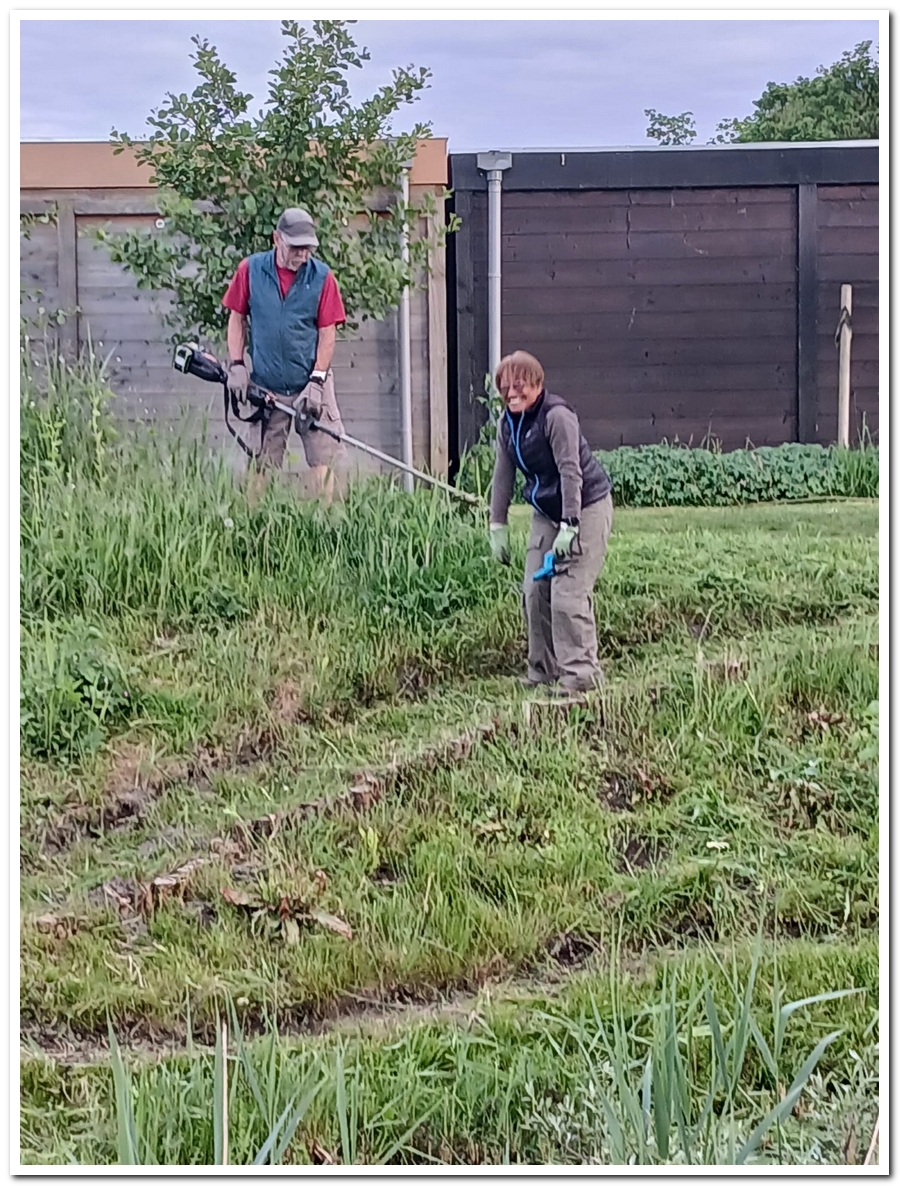 Corien ruimt weer hopen op, veel bramen, die uitgestoken worden door Levien en water Jos.