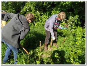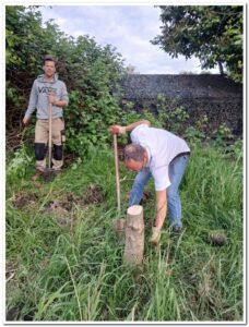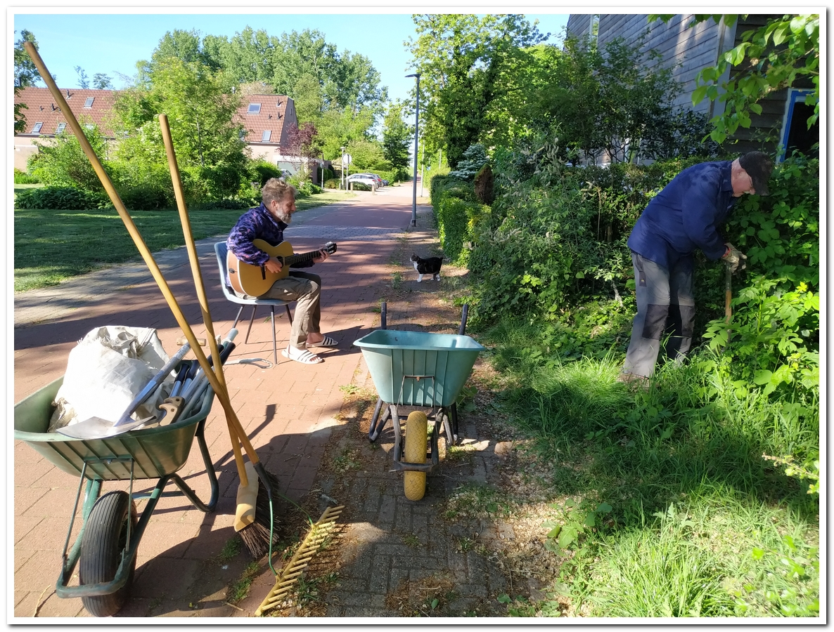 Het begon al vrolijk. Terwijl Johan braam aan het uitgraven was in de vlinderstrook, speelde en zong Daniël diverse nummers op zijn gitaar.