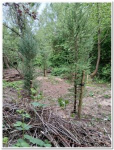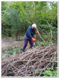 Rond de ingang van het bos groeit veel braam, wat Nanette flink wat kort snoeit.