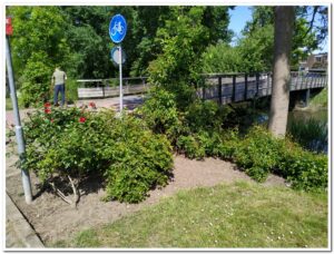 Hans Klaver heeft (nog net te zien) de rozen piramides bij de Kornbrug weer mooi en schoon geschoffeld en de struiken gesnoeid. Kan er weer een tijdje tegen.