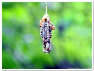 Ze vreten soms alle bladen van de waardplant, in dit geval de kardinaalsmuts op om zich daarna te kunnen verpoppen. Niet getreurd de plant kan er tegen, die loopt slechts enkele weken groeiachterstand op en gaat gewoon weer verse blaadjes vormen.