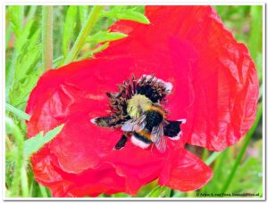 Hester kwam erbij om de bloemenzaden (die Paul nog verzameld had) uit te strooien. We hadden ook nog twee bussen diverse bloemenzaad wat gestrooid werd. En dit alles voor de werkbijen en de vlinders.