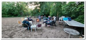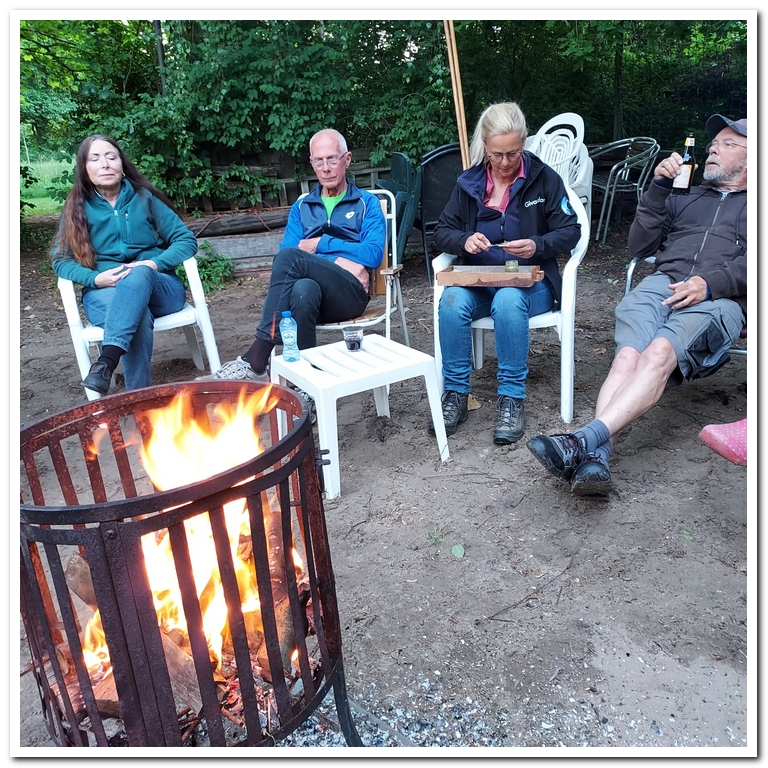 Na het werk, tijd om even bij te komen en de sociale tok te doen op het volleybalveld bij een warm vuurtje.
