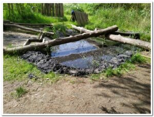 Ruud zocht een klusje tussendoor. Nou dat heeft hij geweten. Hij heeft een kwelplasje bij de waterpomp uitgegraven om dit op te schonen.