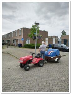 En er achteraan een grasmaaier ondanks dat wij dat zelf doen. Sommige weten het nog steeds niet.