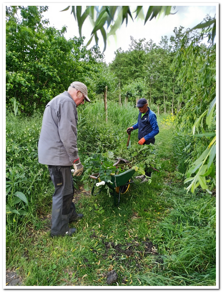 En uiteraard de vaste klus wat je elke week wel moet doen is het uitgraven van berenklauwen en eventueel braam. Dit werd gedaan door Johan en Ad. Ze hadden weer een paar kruiwagens vol.