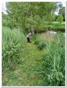 Hier bosmaait Jos de paden vrij van gras en riet zodat de paden beter te bewandelen zijn aan het nieuwe natuurpad langs de gracht.