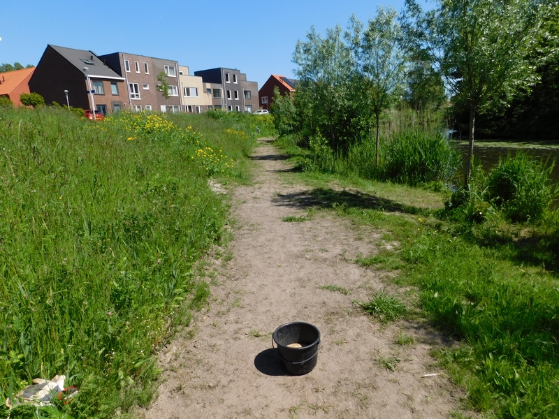 Martin en Hans hebben de bakken weer geleegd. Op de dijk zagen wij twee AH-tassen vol met lege bierblikjes waarschijnlijk uit de auto gegooid.