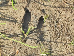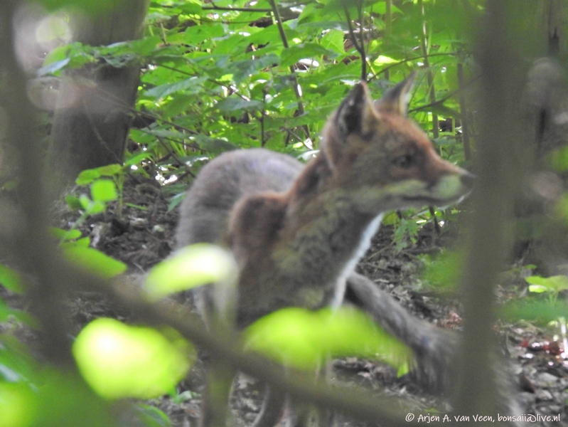 Arjen zag een vosje in het bos achter HW.51 en een pootafdruk van een ree. Hans zag later aan de achterkant van Greets vogelkijkhut ook een vosje die dronk uit een waterbak maar hij zag mij en rende snel weg.