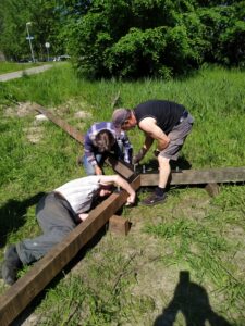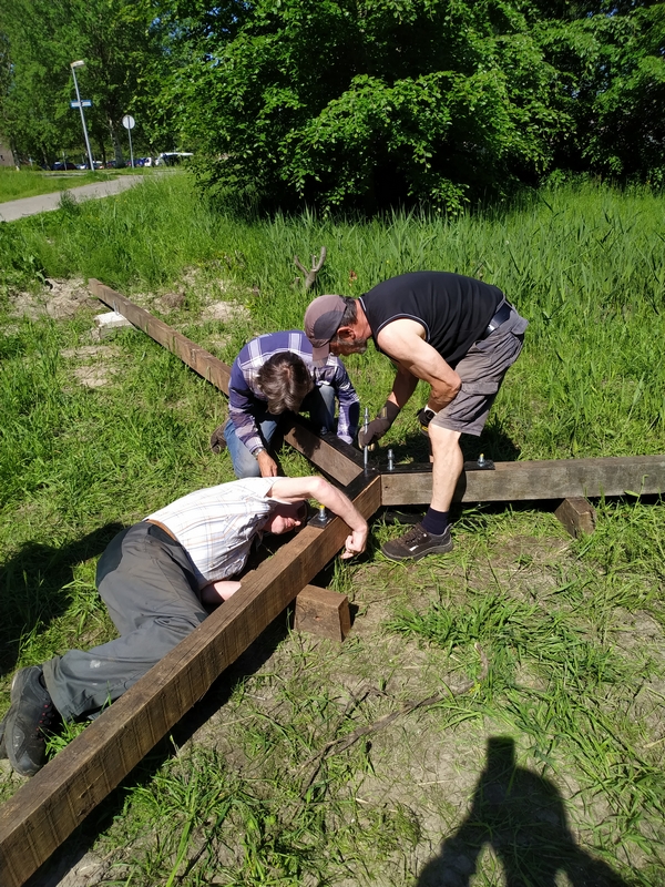 Het gaat nu snel met de maak van de schommel door Rob, Mike en Ruud. Nog een paar weken dan is hij klaar.