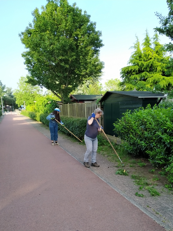 Carol en Ine waren druk bezig om berenklauwen uit te steken die na twee weken flink gegroeid waren.