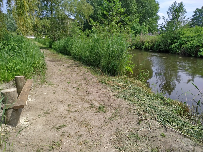 Dit is een mooi gezicht langs het natuurpad. Een degelijk nieuw bankje en daar tegenover heeft Jos van Carol het riet weggehaald voor het vrije uitzicht. En zo krijgen we op drie plekken bankjes met een vrij uitzicht langs dit pad.