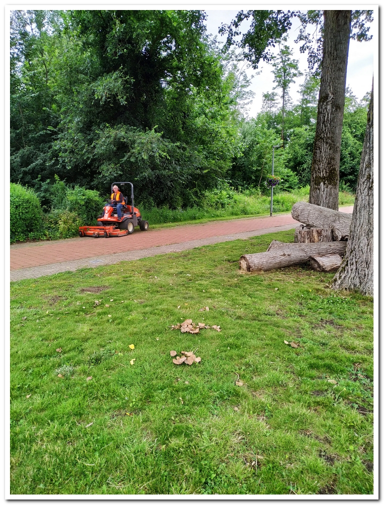 Rudy heeft vandaag het gras op de twee open plekken in het Windbos gebosmaaid. Daarbij heeft hij alle bloemen netjes laten staan.
