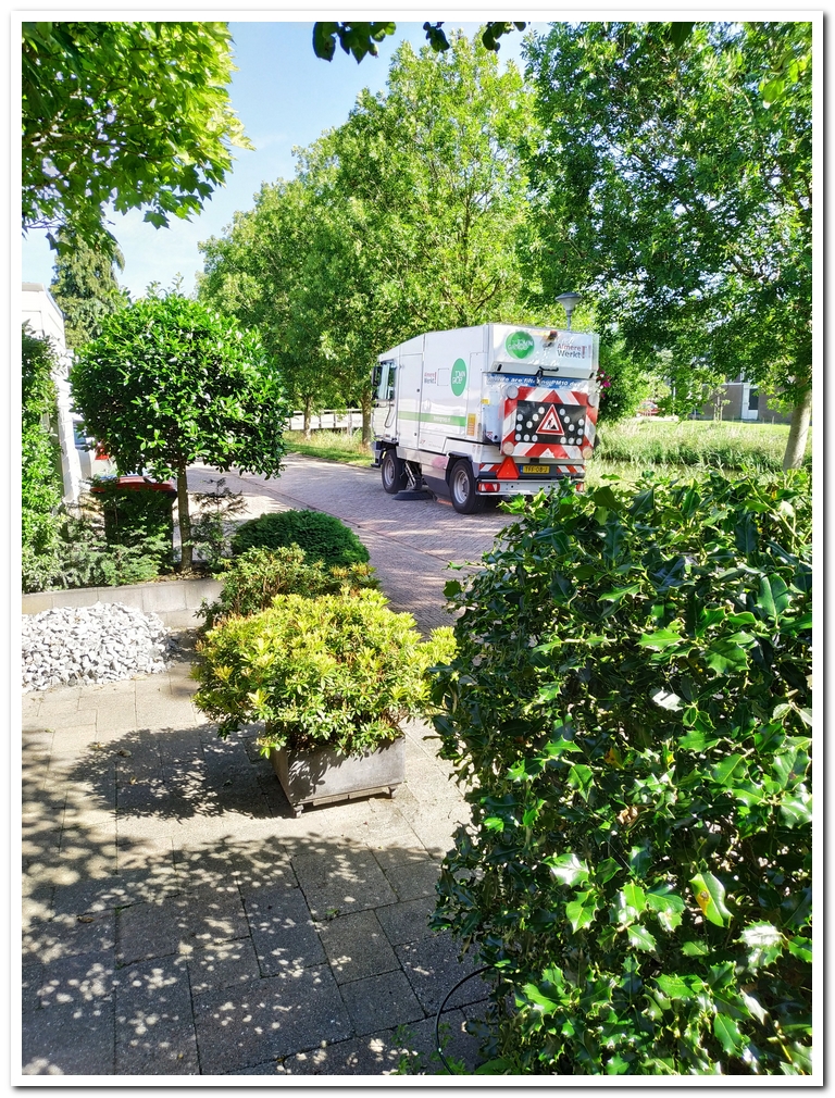 Ik zag vandaag dat er een borstelwagen van de Tomingroep door de wijk reed om de straatgoten schoon te vegen. Scheelt ons veel werk.