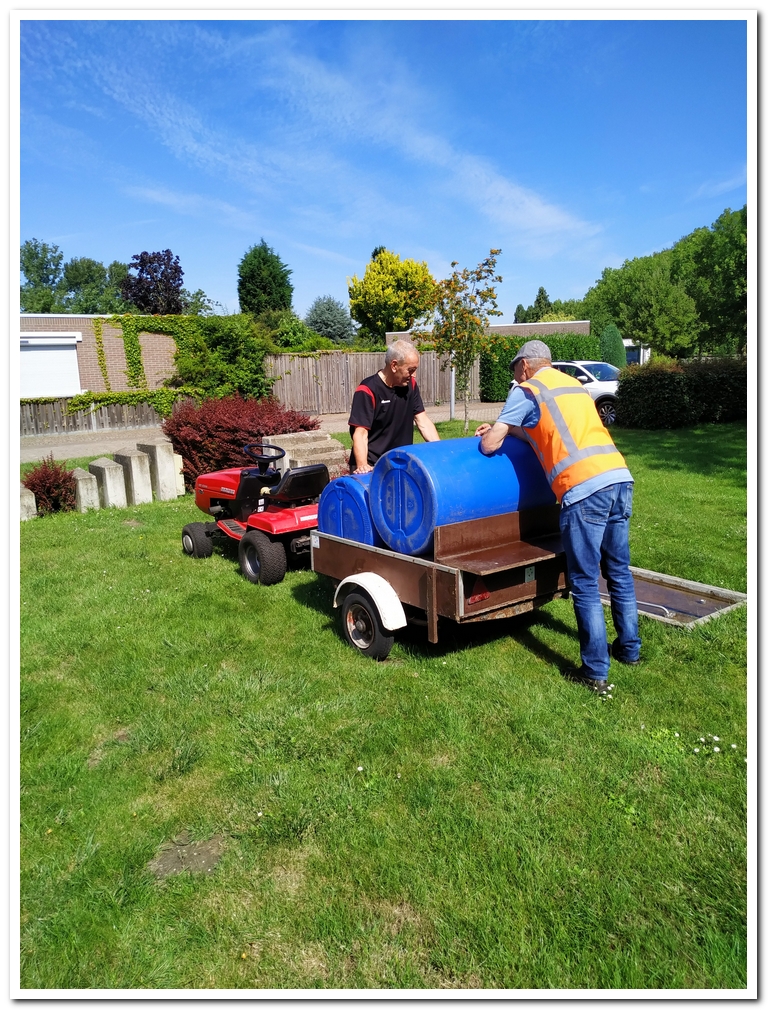 Maar men moest opschieten want het begon al te regenen. Ze hebben nog geen uur kunnen werken. Het was rennen geblazen. Ze wilde nog naar het volleybalveld maar alles was nat en het vuur kregen zij niet aan, dus dan maar naar huis.