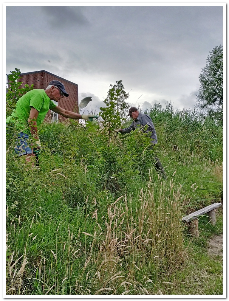 Veel hoog riet en gras maar ook de bestrating werd onkruid vrij gemaakt.