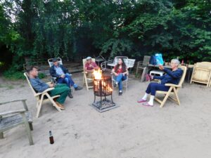 En natuurlijk werd de avond traditioneel afgesloten op het volleybalveld met een drankje en een vuurtje. Daar kwamen Bram en Ine ook nog gezellig bij zitten. Al met al weer een geslaagde braamsluipavond.