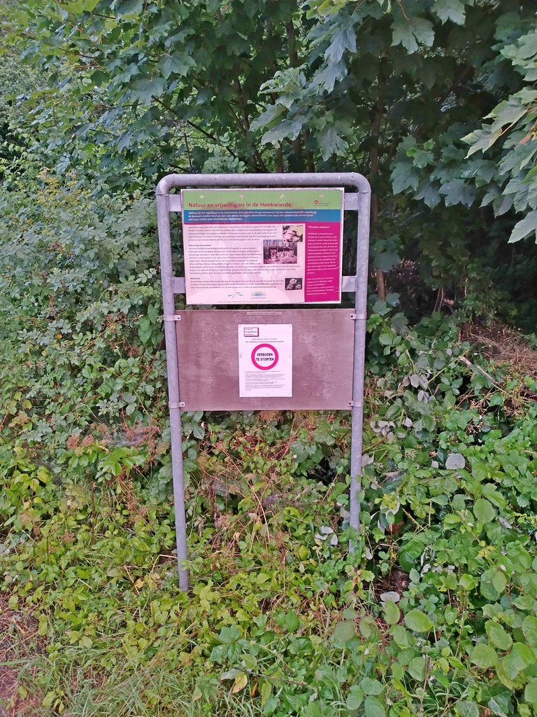 Hans heeft een bordje gemaakt en de pamfletten geplaatst bij de in-en uitgang van het vogelbos. Hopen dat het helpt tegen de dumpingen.