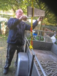 En bij de mandschommel werd eerder op de dag al door Ruud en Mike de eerste van de veiligheidsmaatregelen aangebracht. Hierbij is het ophangpunt verlaagd zodat een kleinere, meer veilige, uitzwaai van de schommel gerealiseerd wordt.