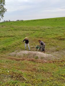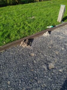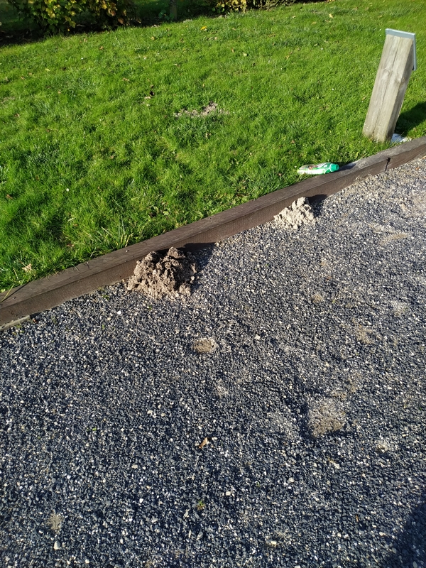 Dit kan een groot probleem worden in de Jeu de Boules baan. Alweer 3 molshopen. Het lijkt of zij niet verder graven omdat de baan is opgebouwd met een dikke laag verharding. Hans heeft de hopen inmiddels al verwijderd ook voor het spelen van vanavond.