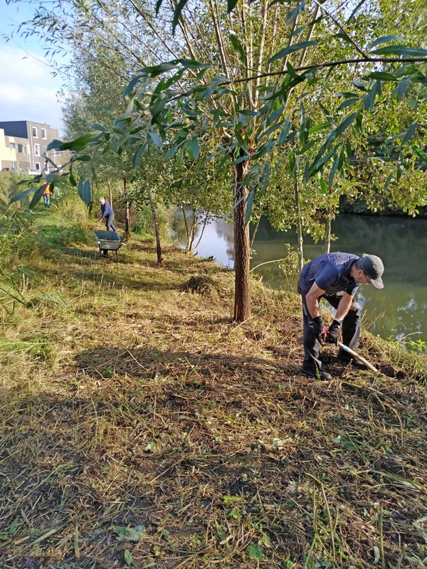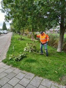 Wij, Martin en Hans waren toch nog niet klaar met het snoeien van de bomen langs de gracht. Ook nog 3 zakken met groenafval geleegd in de bladkorf.