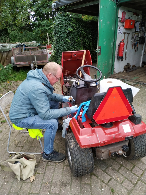 Ik kwam de aanhanger halen en wie was daar nu weer. Willem die bezig was om de carburateur van de tractor te repareren. Dit geval is het moeilijk omdat er geen onderdelen meer te koop zijn dus moet Willem zelf kleine asjes maken voor in de carburateur. Maar hopen dat hij het voor elkaar krijgt.