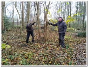 Dit zijn twee van de vogelbossers t.w.: Ruud en Johan die de iepen trachten te verminderen en gelijk wat openheid te creëren.