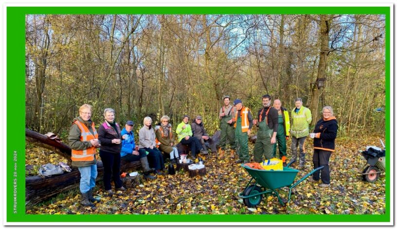 Op de 28e van de vorige maand waren we weer met een megamooie equipe van zestien. Dertien daarvan staan er op de foto, die anderen struinden onverstoorbaar door het bos en wist ik ook niet te identificeren.