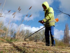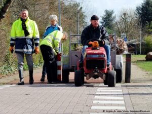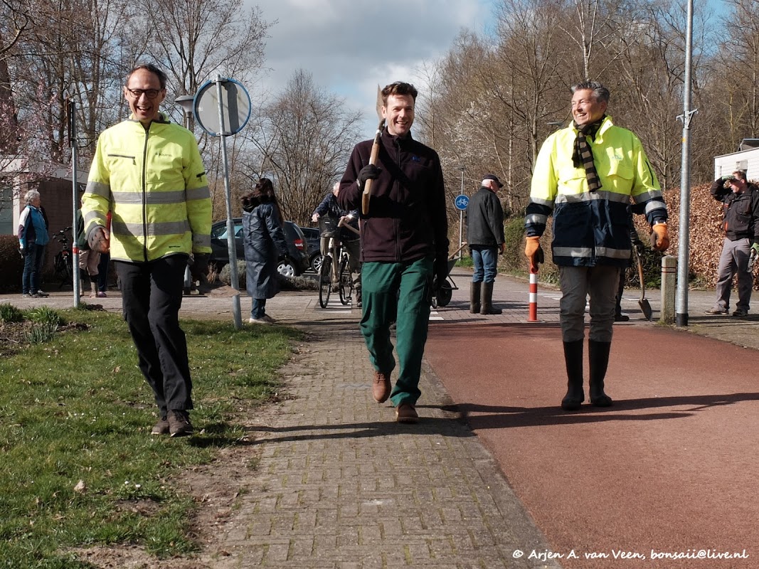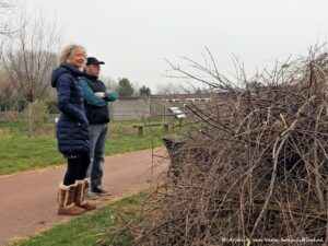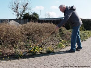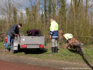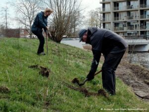 Hans meldde dat het planten bij het natuurpad prima was verlopen. Ook daar was een goede bezetting. Lap; “Met Johan, Ad, Hans, Jos, Carol, Regien en Eline graven wij struikjes in tegen het talud bij het nieuwe natuurpad tot aan de brug en harken de lange strook vlak, nabij de hondenbak naast het fietspad aan i.v.m. inzaaien.