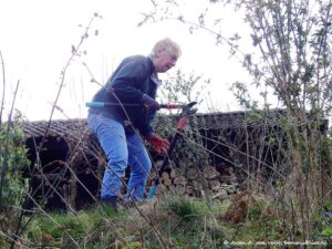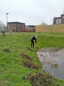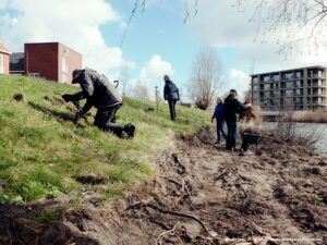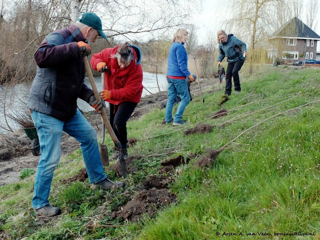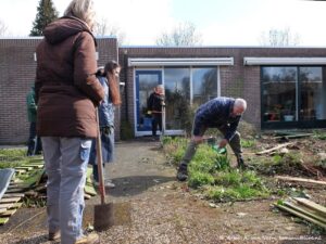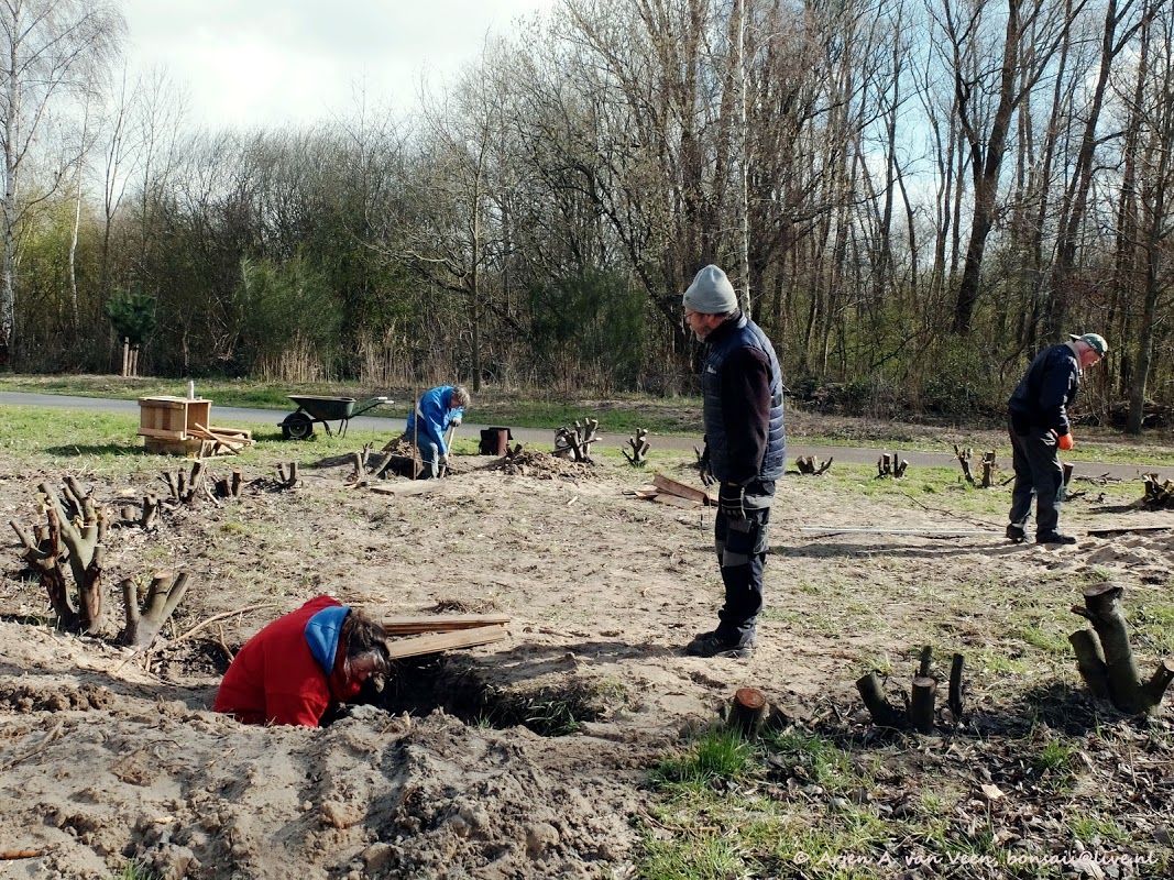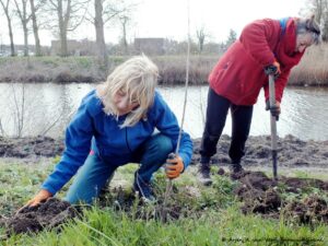 Hier oefent Regien voor het plantwerk later bij het natuurpad. Toen ik aan het eind van de ochtend Rob met een brede glimlach richting huis zag gaan, begreep ik dat ook hun ochtend goed was verlopen. Nu maar hopen dat de jeugd hun werk van vandaag met rust laat.