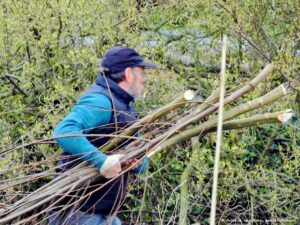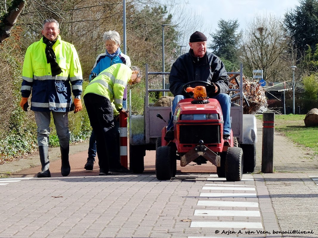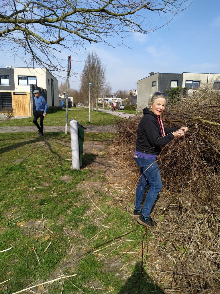 Joop en Mini ruimen de laatste wilgentakken op naar de grote hoop.