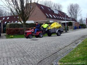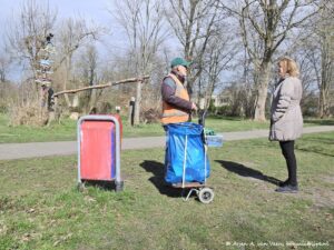 Martin & Johan legen de afvalbakken. Net als Lap zijn zij ook van de categorie die een praatje niet schuwen. Dus zo een afvalbak ronde kan even duren.