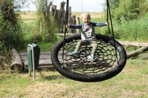 De Webertjes testen na Levien als eerste de nieuwe schommel.