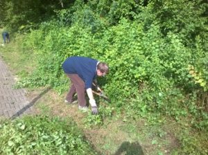 We hadden deze keer wel 6 grote zakken vol met groenafval. Na de koffie pauze,wat deze keer gezet was door Greet hebben we het groenafval opgeruimd. Nicolette en Hans zijn nog even gaan kijken hoe het met de duizendknoop toeging aan de achter tuinen van de woongroep. Er waren maar enkele exemplaren wat wel een maand kan wachten met uithalen. We houden het onder controle.”