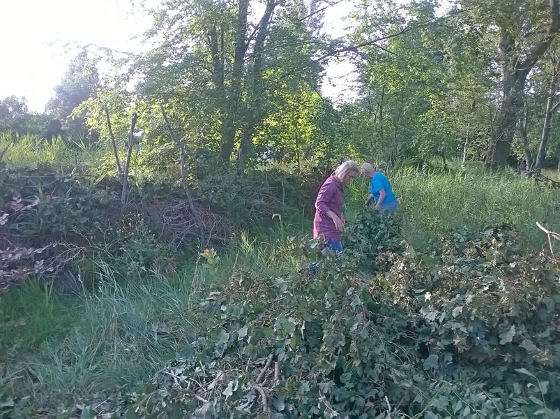 Greet heeft een verzoek aan Johan, ”Vandaag hebben Marlies en ik de vogelobservatiehut “vrijgeknipt” van bramen en andere obstakels. Donderdag gaan we met een stel mensen het dak lichten en de hut afbreken. Heb jij als opper riller tijd om even mee te kijken waar we al dat oude hout gaan rillen? Of wellicht vind je het leuk om mee te helpen?”