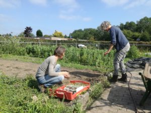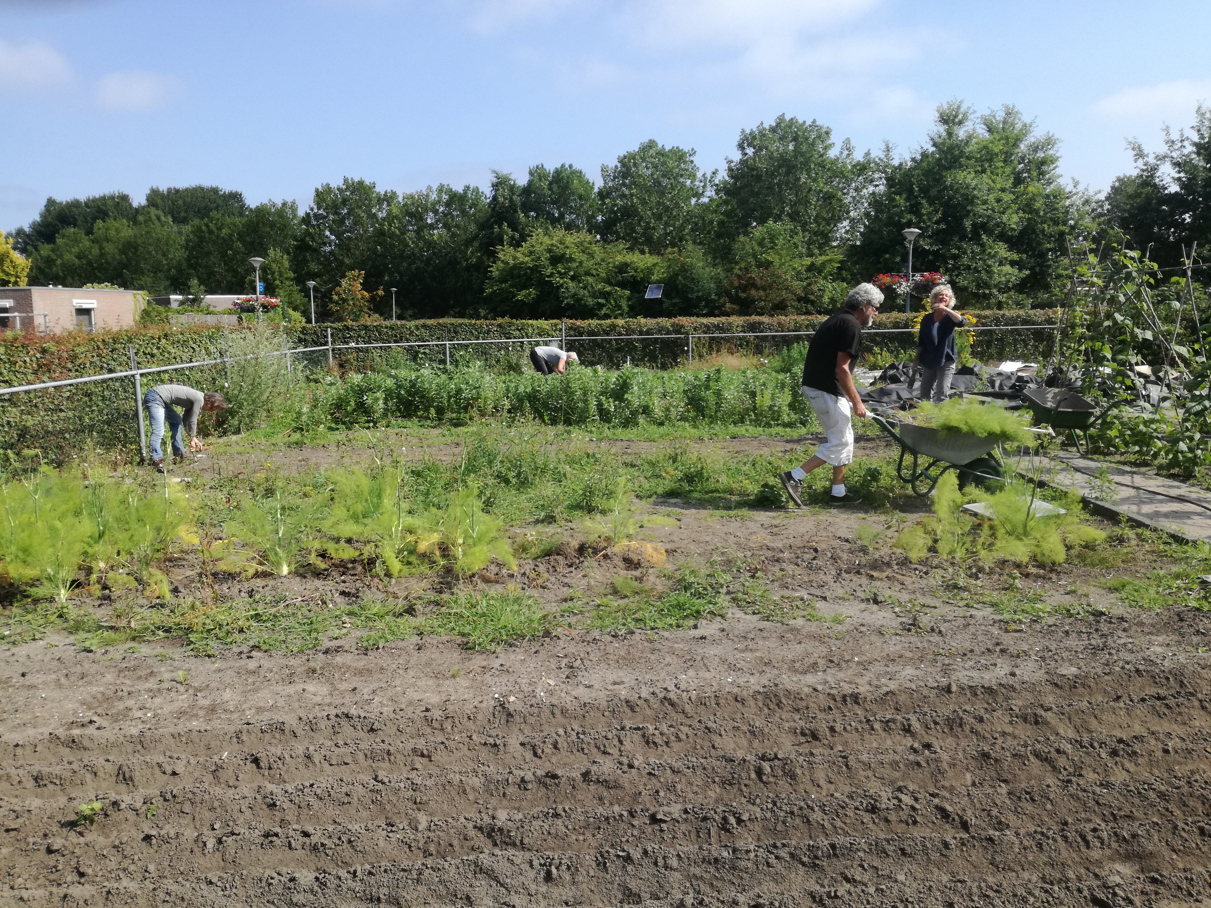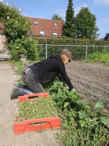 Op de VLA tuin is het gezellig druk. “Je kunt meehelpen hoor”, zegt Cees. “Wij komen handen tekort.”