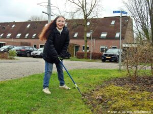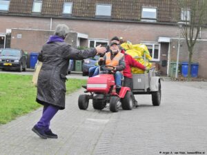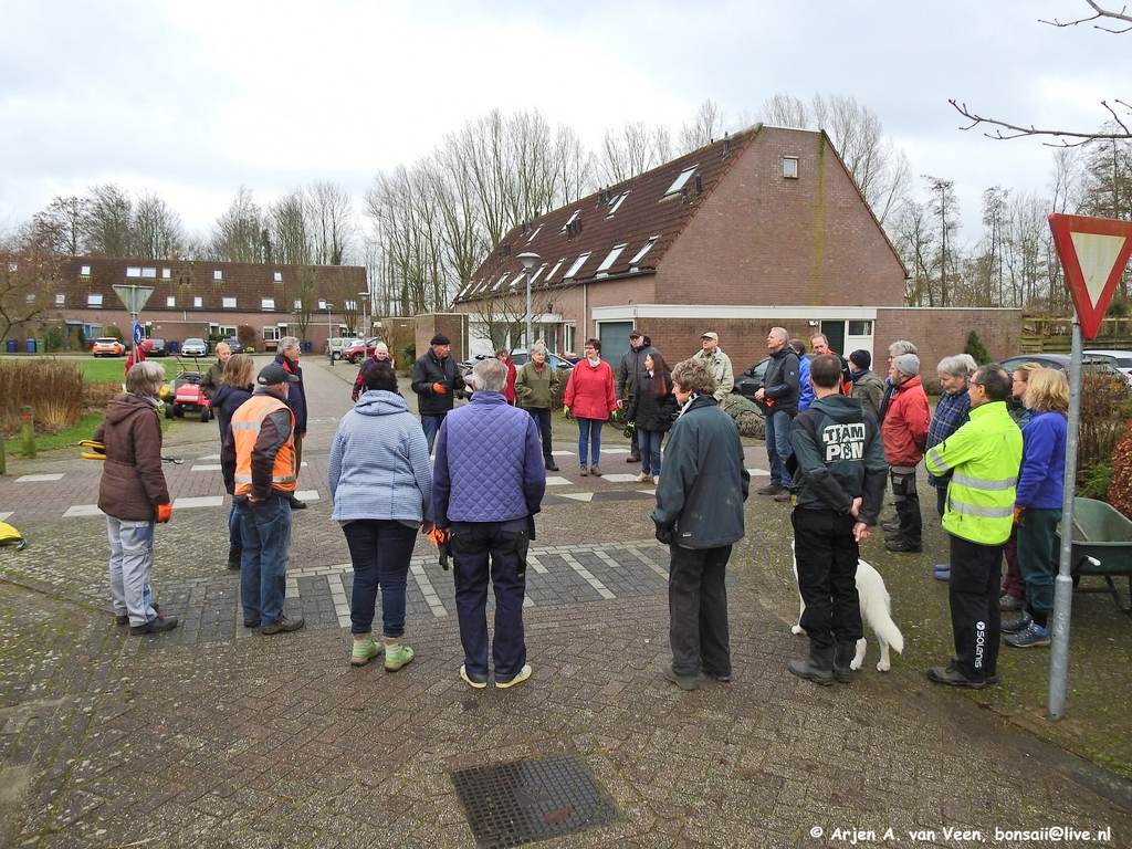 Het is weer mooi weer zoals vaak tijdens de WWO. Hier komen zij aan, gedreven om de wijk te verzorgen. We kwamen vandaag op wel 36 liefhebbers voor de werkzaamheden.