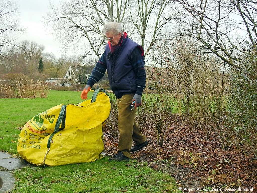Dan nog even takken weg te brengen en daarna alle afvalzakken op te halen her en der en te legen op de hoop van Joop.