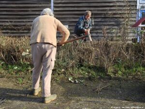 Er staat veel op het programma vertelt Bram. De diverse borders, heel veel knotten langs de kwelbeek, Plantgoed ingraven in het Windbos, Plantgoed inkuilen in de vlinderstrook enz enz.