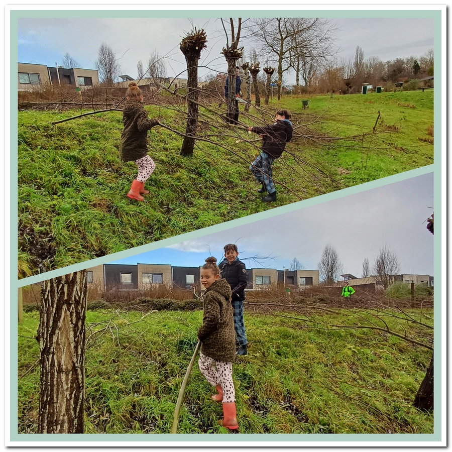 Pauline kwam net langs toen wij bezig waren met het rillen van de takken.