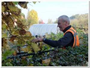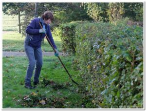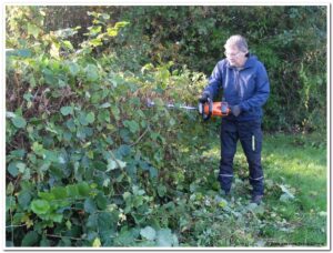 De moestuin heg kreeg een laatste knipbeurt voor de winter, vooral het rechter deel moest nog verlaagd geknipt worden en is uitgevoerd door Thom en Elly.