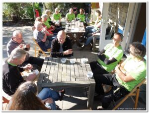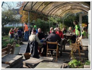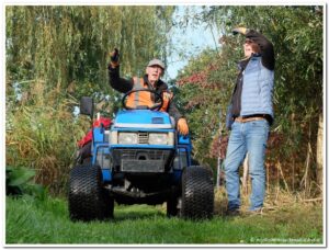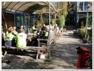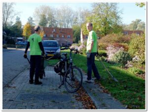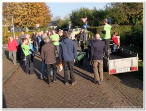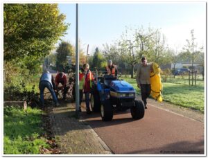 Daarna legde hij de werkzaamheden uit. De nadruk vandaag was wel de vele hopen groenafval in de wijk afvoeren en het vele boswerk met name braam en clematis uitgraven. Daarnaast natuurlijk ook de gebruikelijke borders en heggen die weer een knipbeurt nodig hebben.