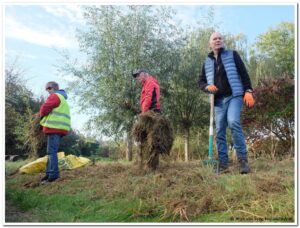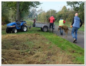Ze zijn hier langs de kwelbeek al bezig om de hopen op te halen.
