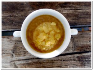 De werkdag eindigen we altijd met een heerlijk soeppie en nu van José, een lekkere Franse uiensoep.