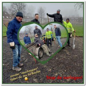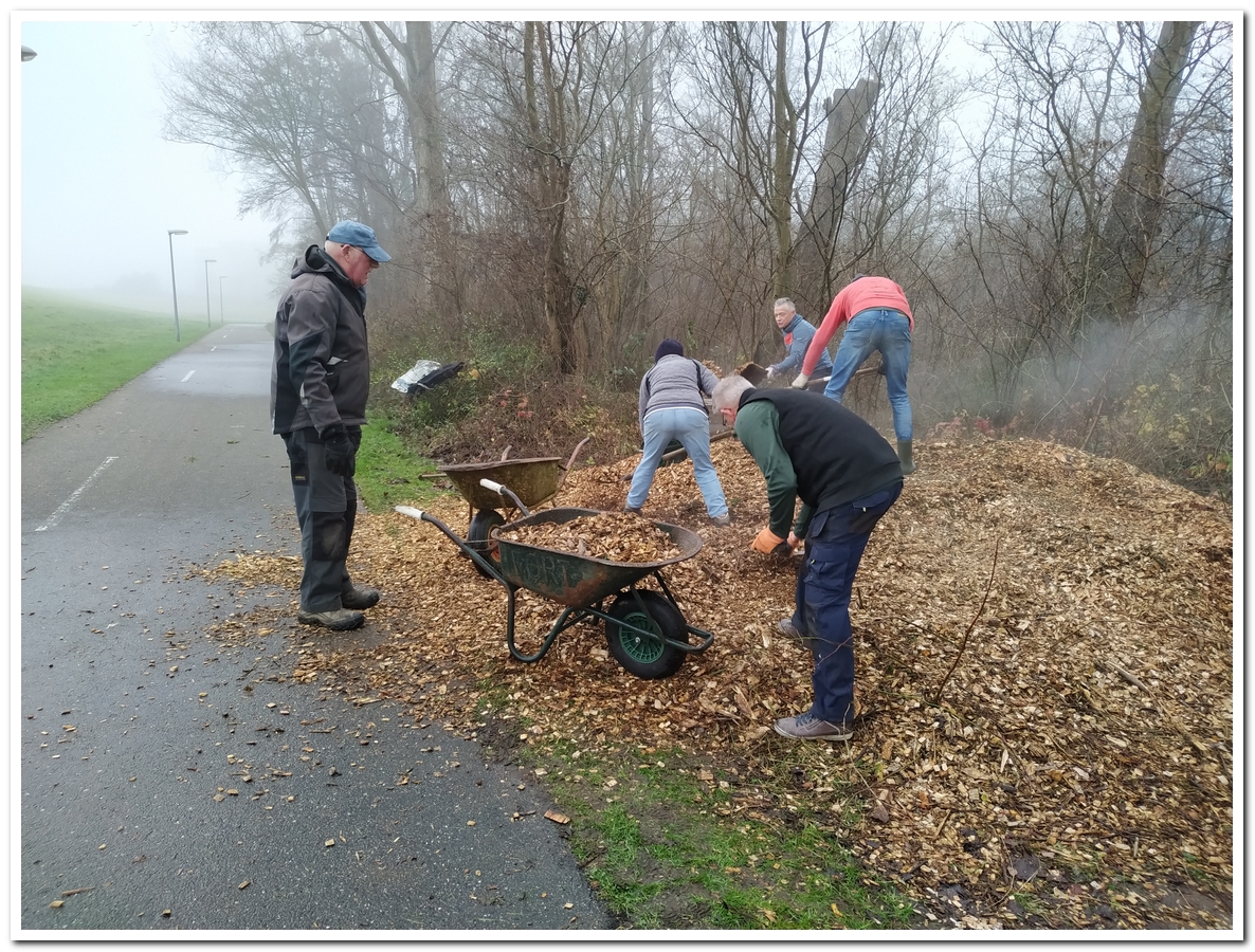Met een grote 10 koppige ploeg was het af en aan kruiwagens, vol uit rijden met snippers.