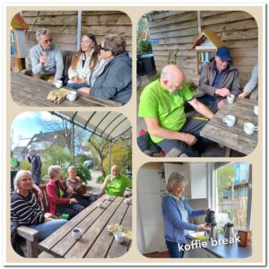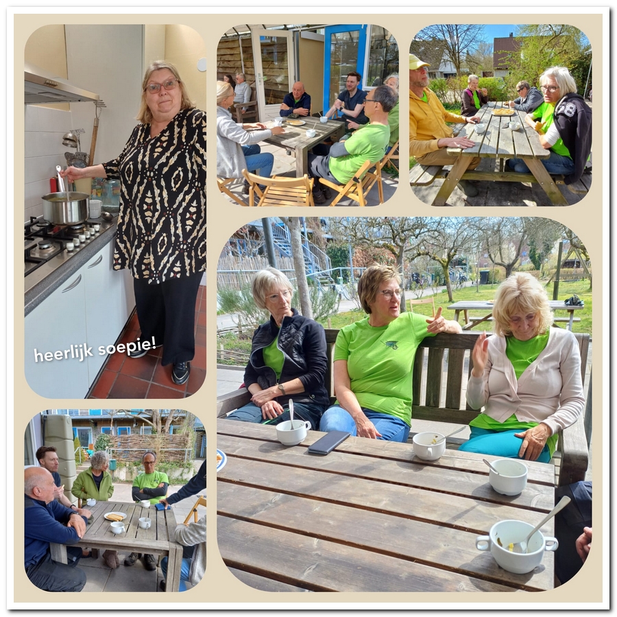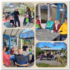 Het loopt al snel “binnen”. Als iedereen aanwezig is worden de leuke klusjes uitgelegd door Jos, die gedaan kunnen worden.