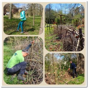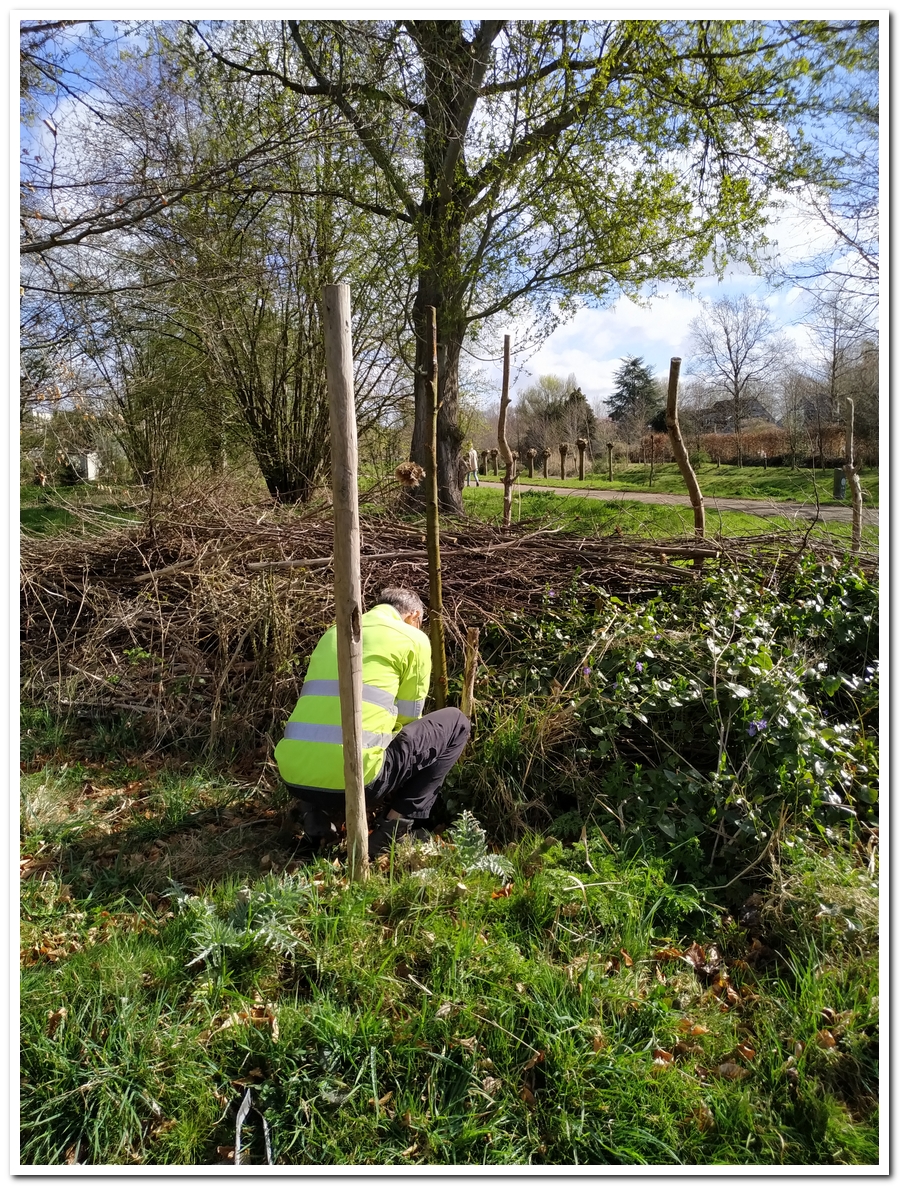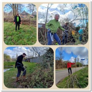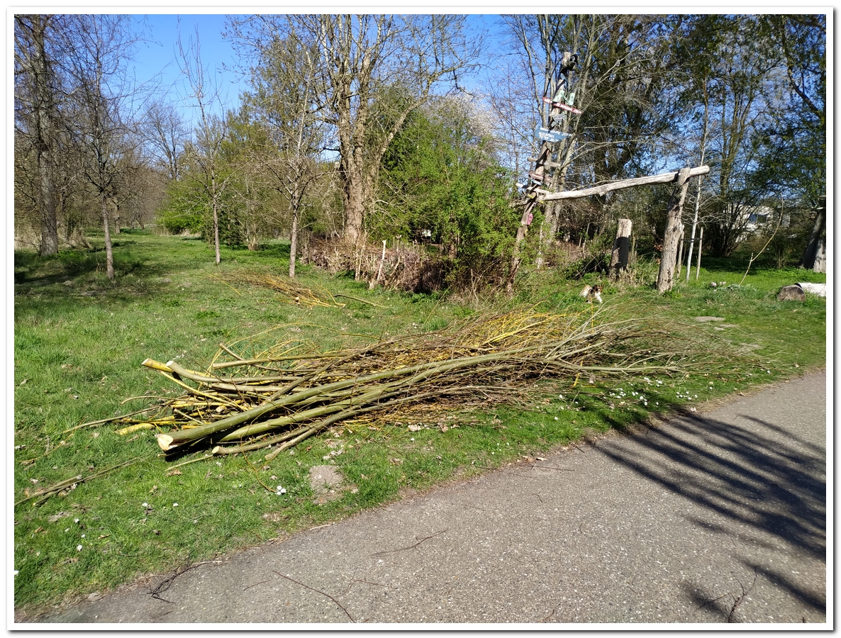 Je ziet ook nog op de foto dat Bart de juiste wilgentenen verzameld voor het nieuwe hekje van de Hoeksteen.