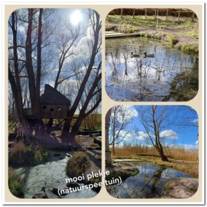 De laatste twee foto’s laten zien hoe mooi rond de kwelbeek is en rond de kwelplas met zijn natuurspeeltuin.