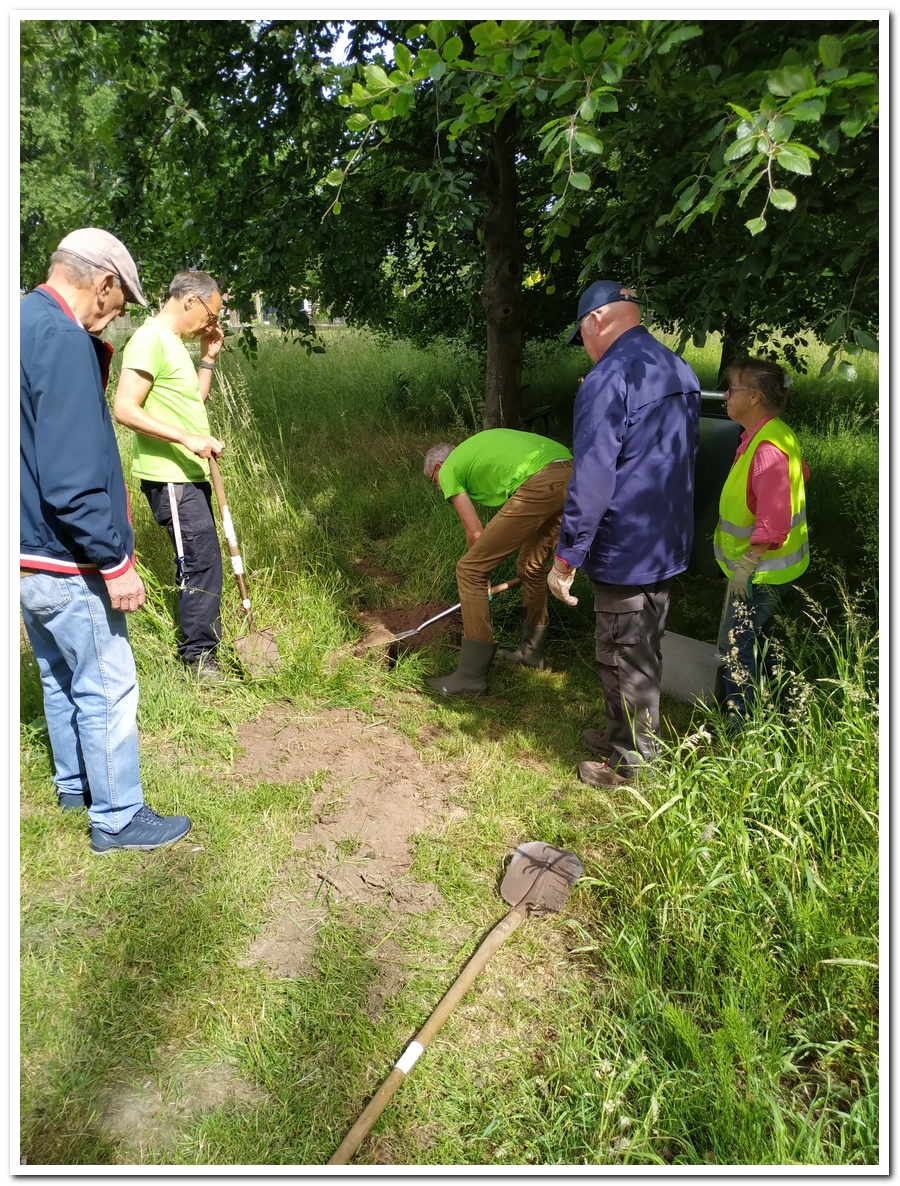 Kees, Bart en Marlies hebben onkruid verwijderd in de speel driehoek. Later kwam Rob O. erbij om de bestrating te schonen met de bosmaaier. Helaas hier geen foto.