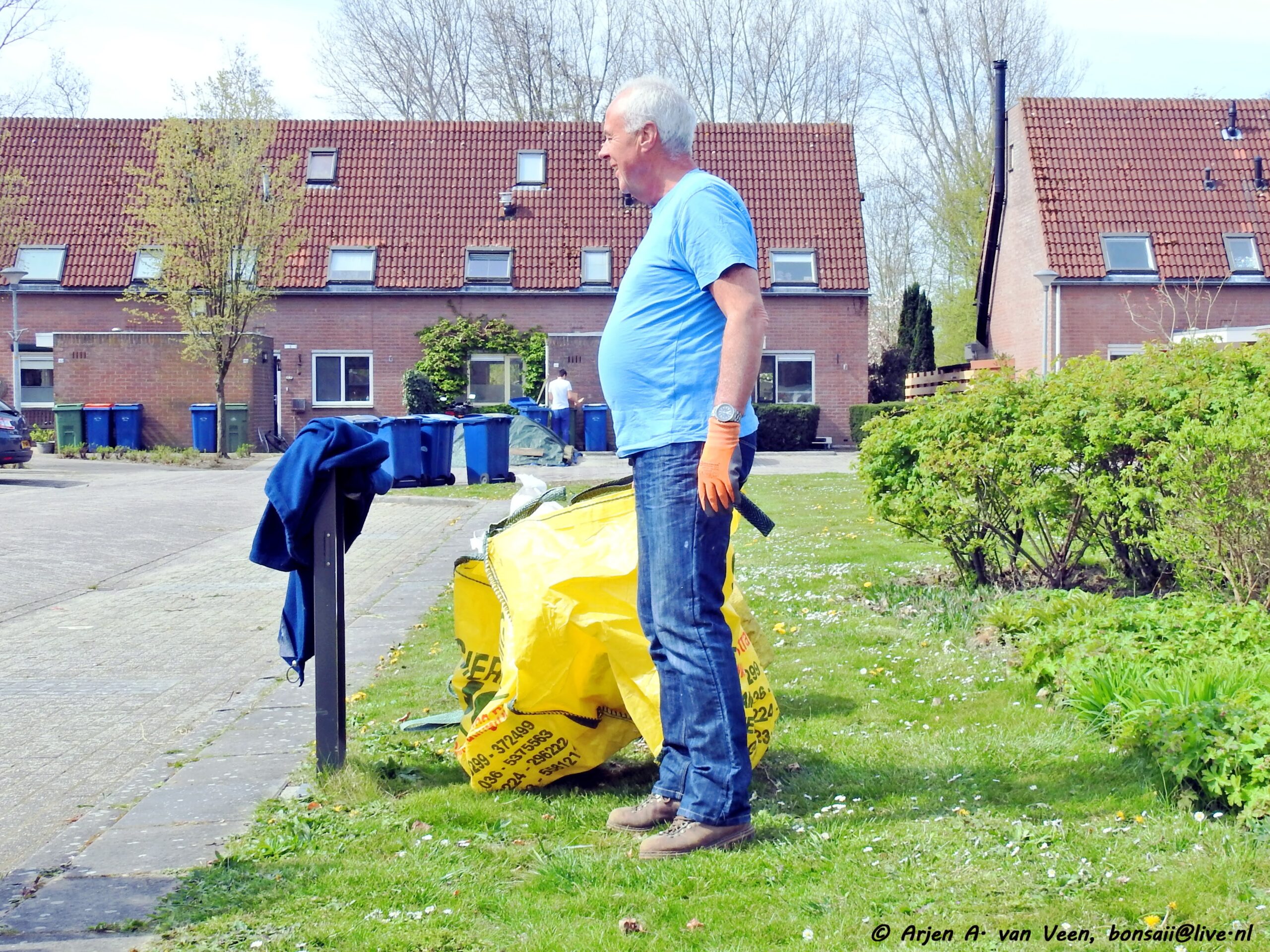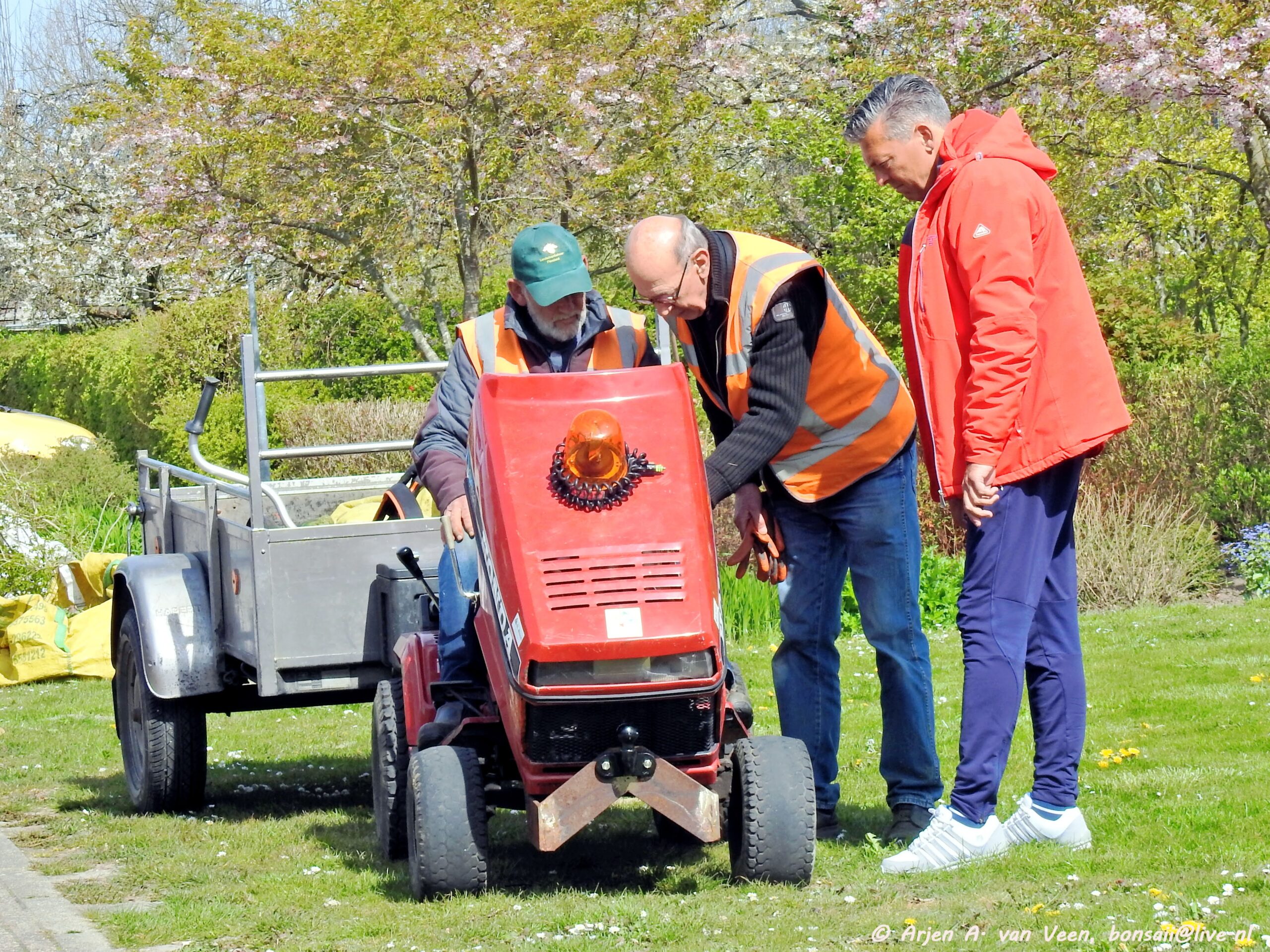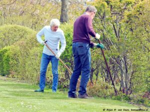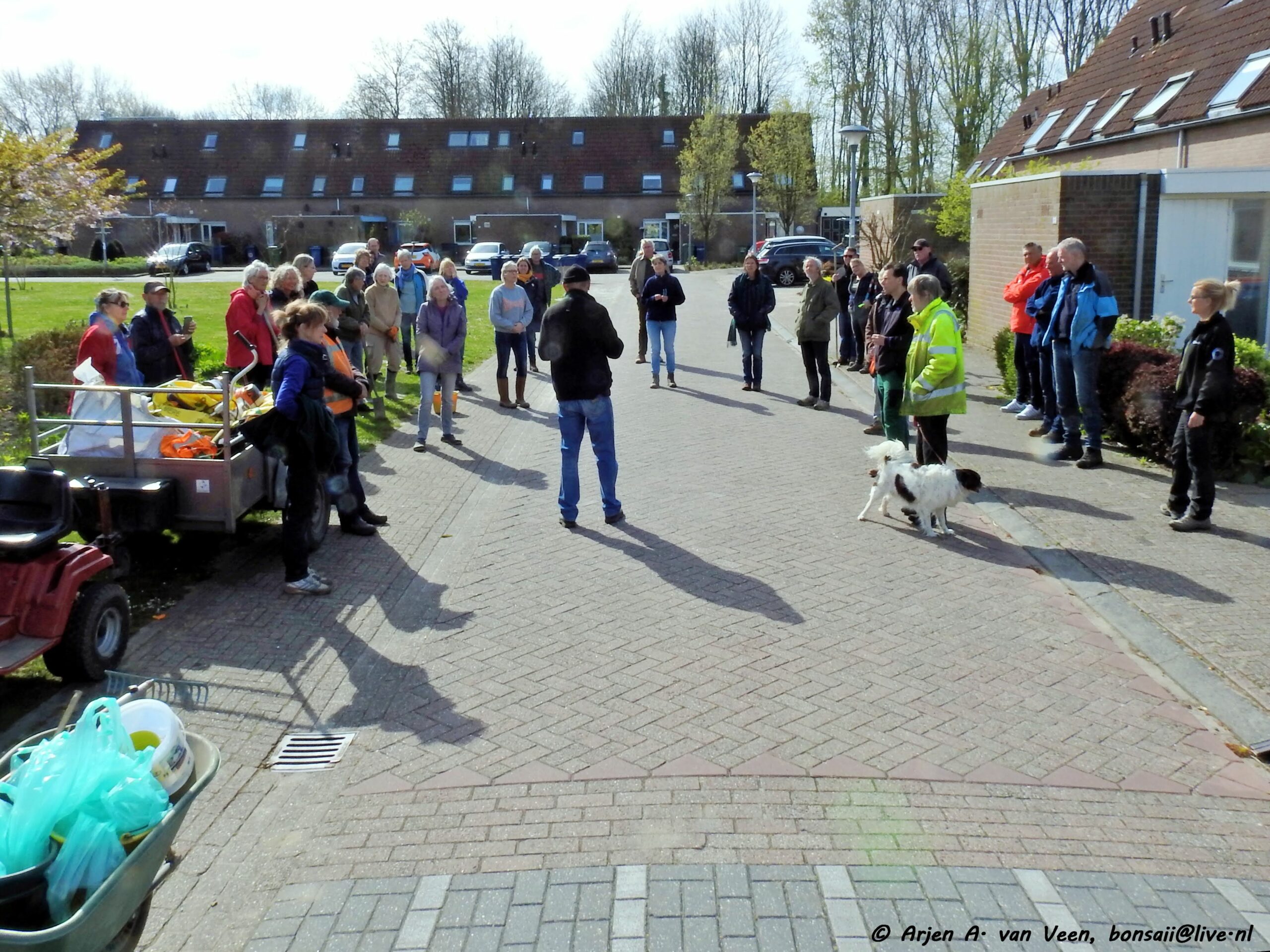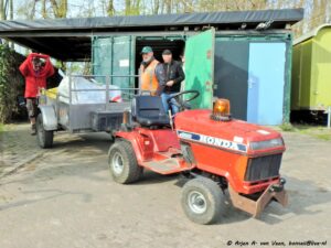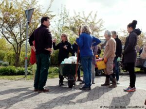 Na de opname en de groet verzamelde de werkers zich op de bekende plek om door Bram iedereen welkom te heten. Om eerst over de ellendige ziekte van Paul te hebben met daarop de vraag aan ieder of wij op dezelfde voet doorgaan met de werkzaamheden in en om de wijk, waarop eensluidend door ieder met ja beantwoord werd. Dat zal Paul zeker prettig vinden om te horen.
